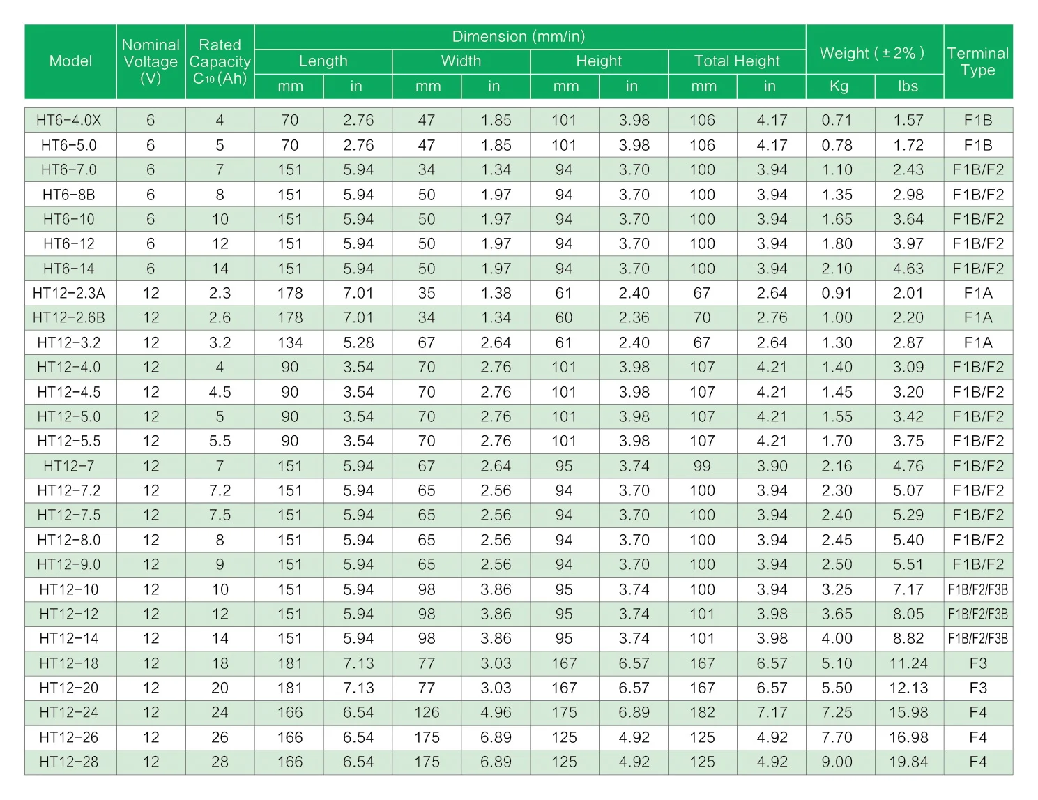 Capacity: 1.3Ah to 28Ah